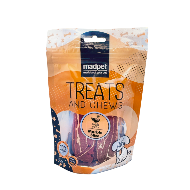 Dog treats with duck.